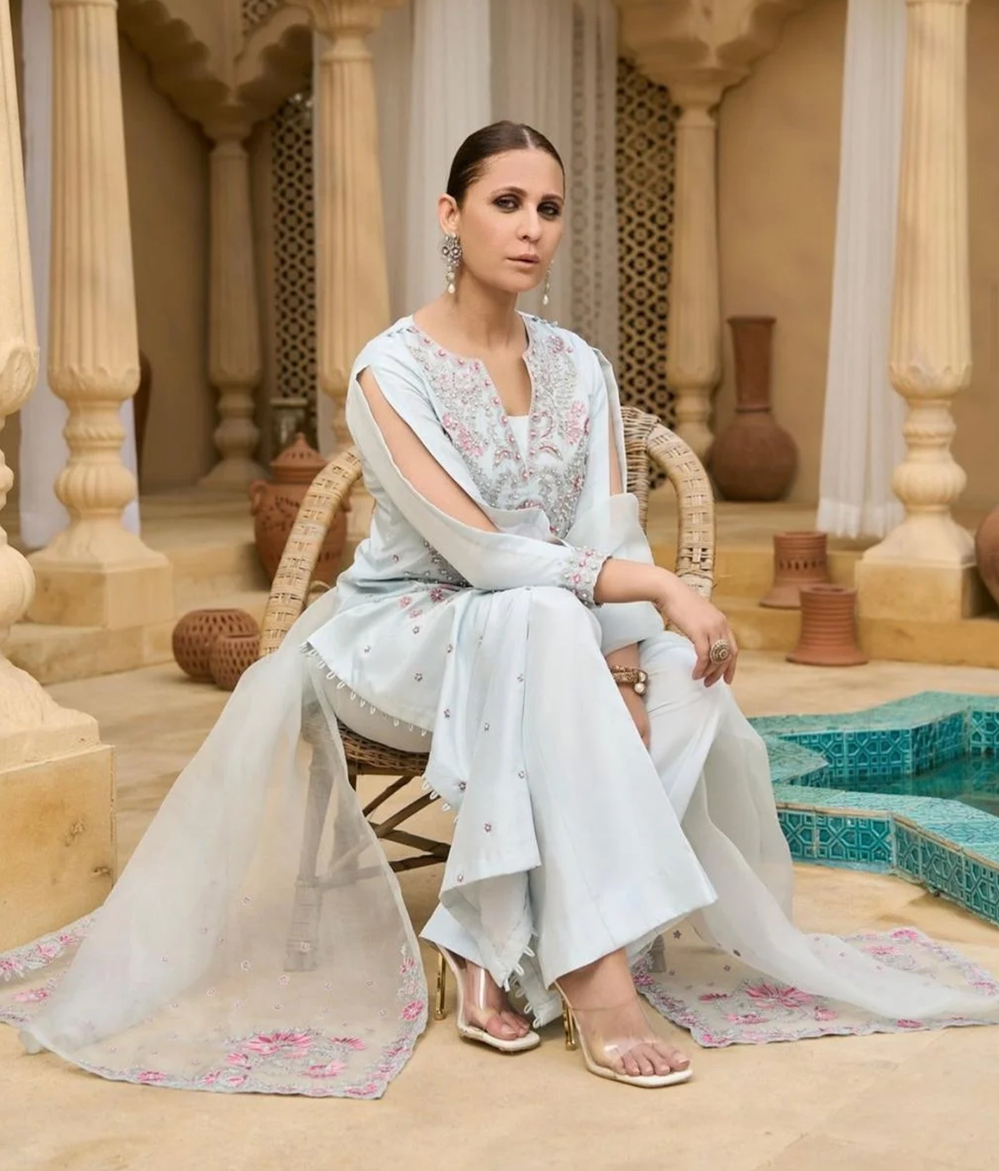Festive ensembles featuring pure fabric with alluring designs and patterns. Outfits adorned with naqshi, dabka, gota, mukesh,...