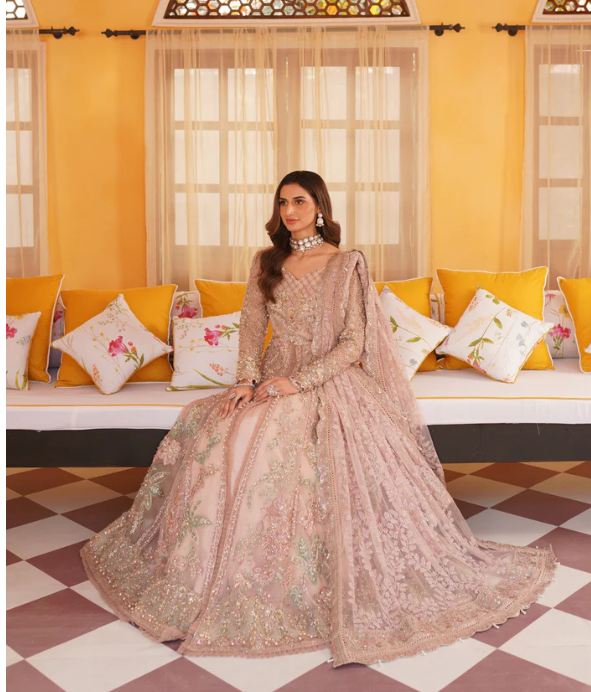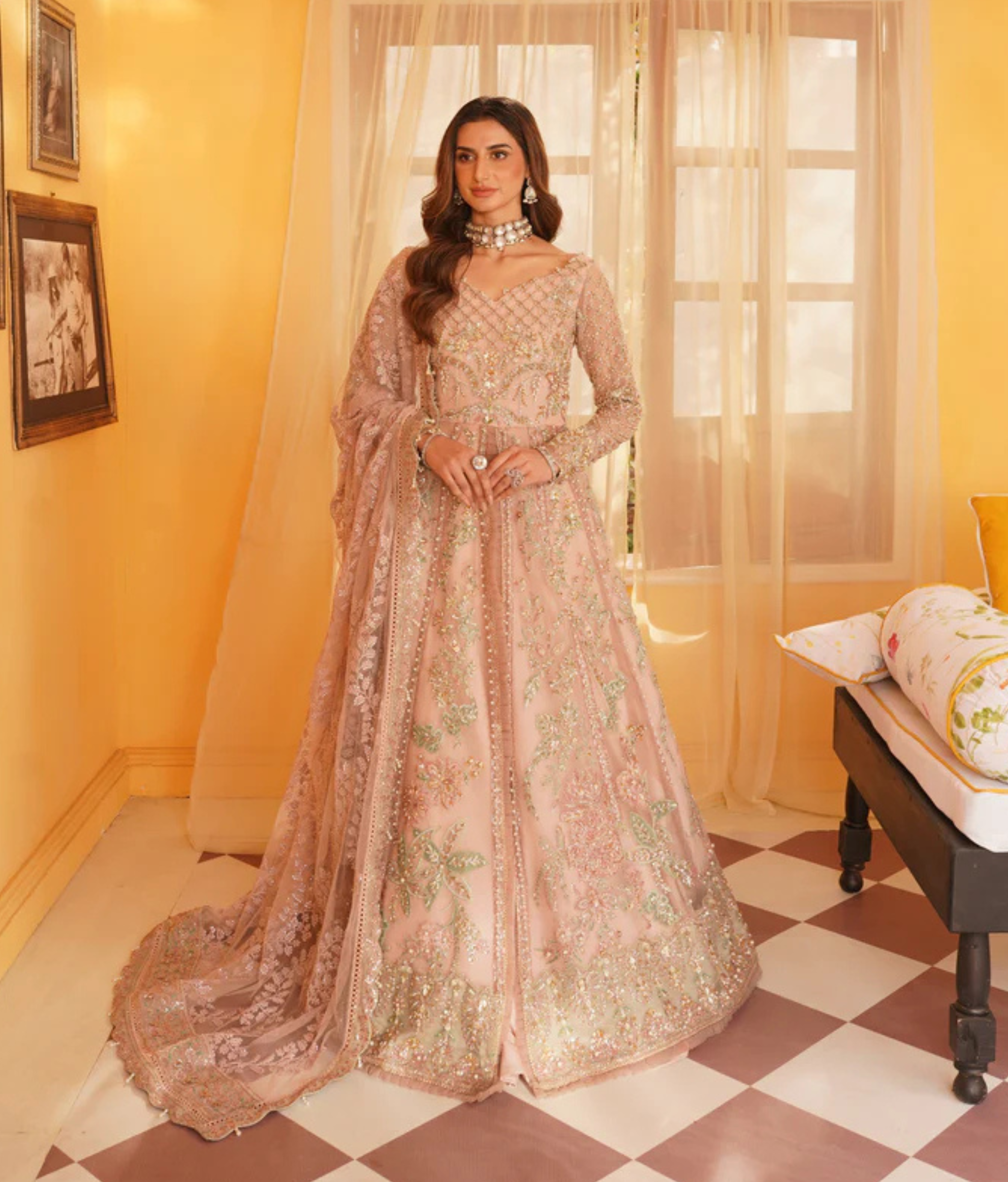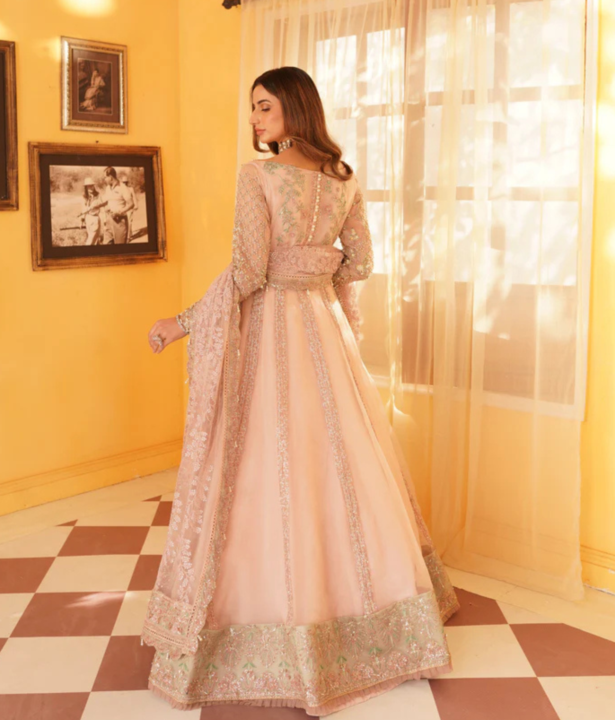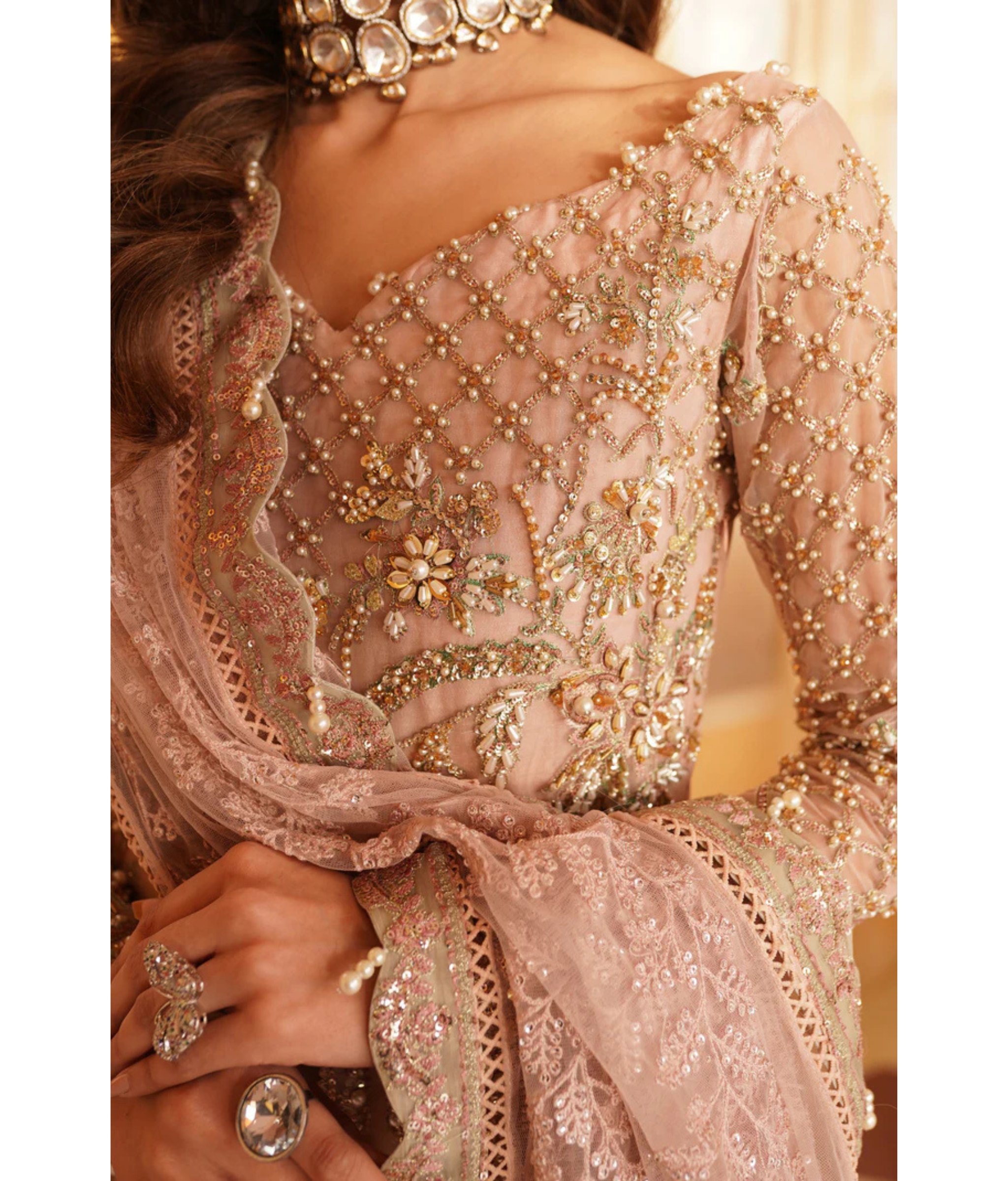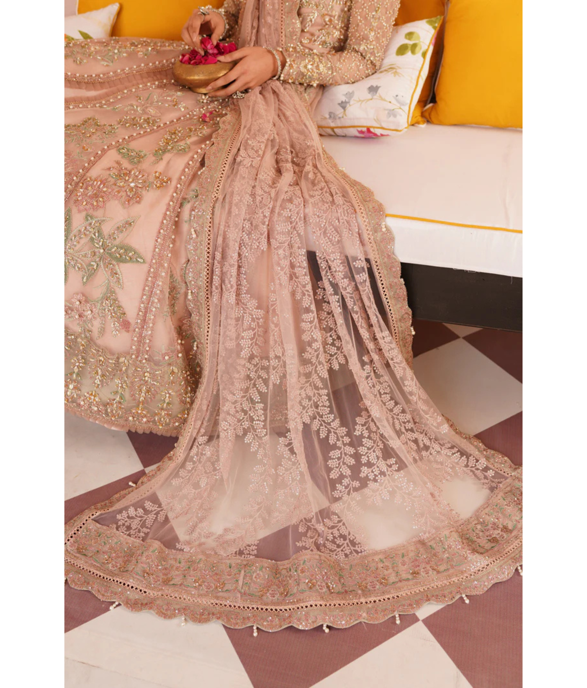 The peach color of the organza fabric gives it a warm and soft appearance, making it perfect for various formal and semi-formal occasions. Crafted from high-quality organza fabric and embellished with meticulous handcrafted embroidery, this dress is a celebration of your unique journey. Now step into a world of timeless traditions with this breathtaking wedding dress. A true reflection of our cultural richness and the celebration of love.