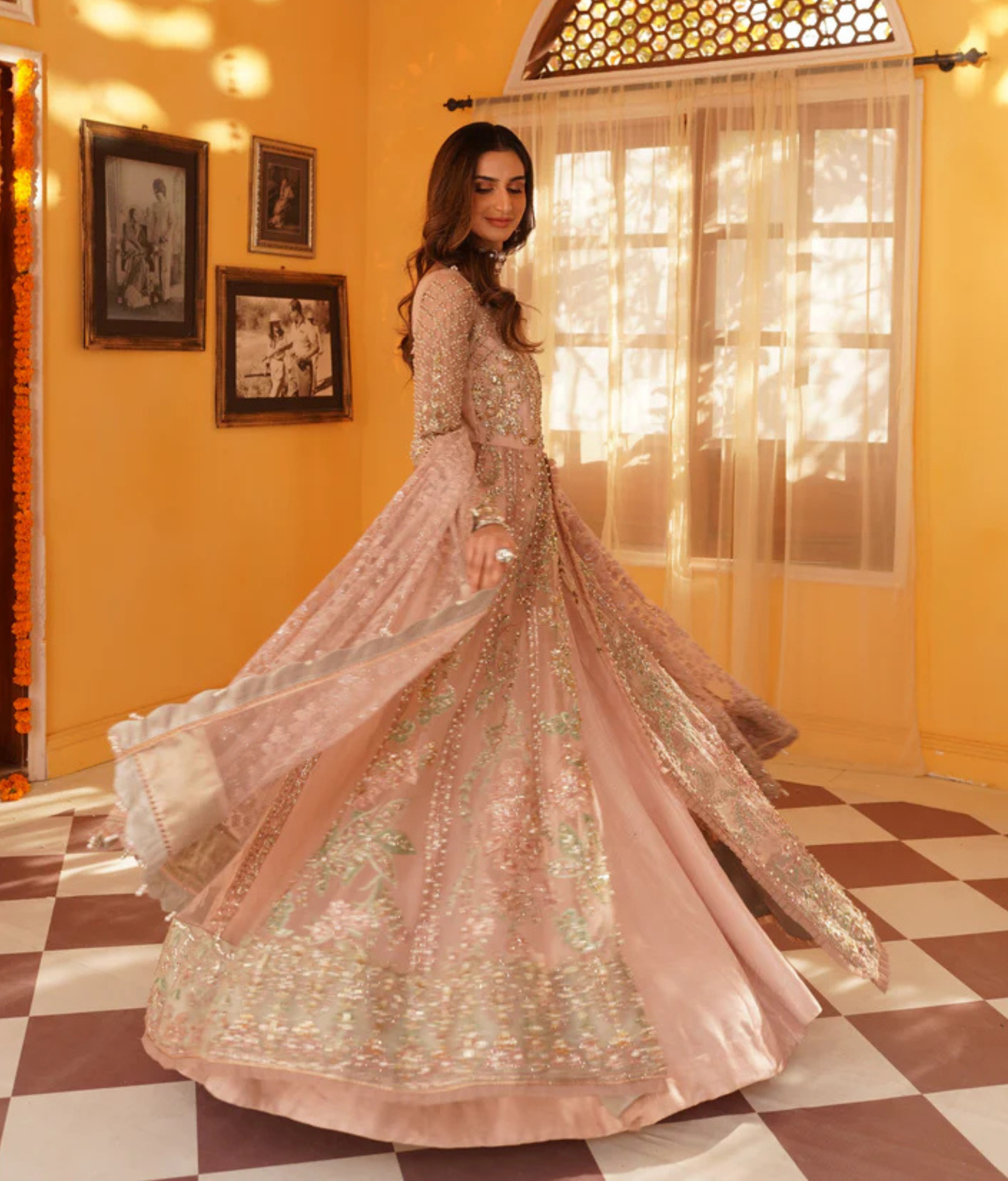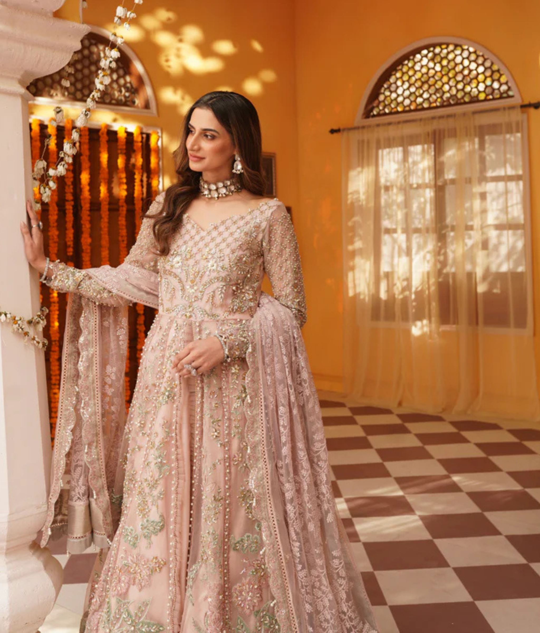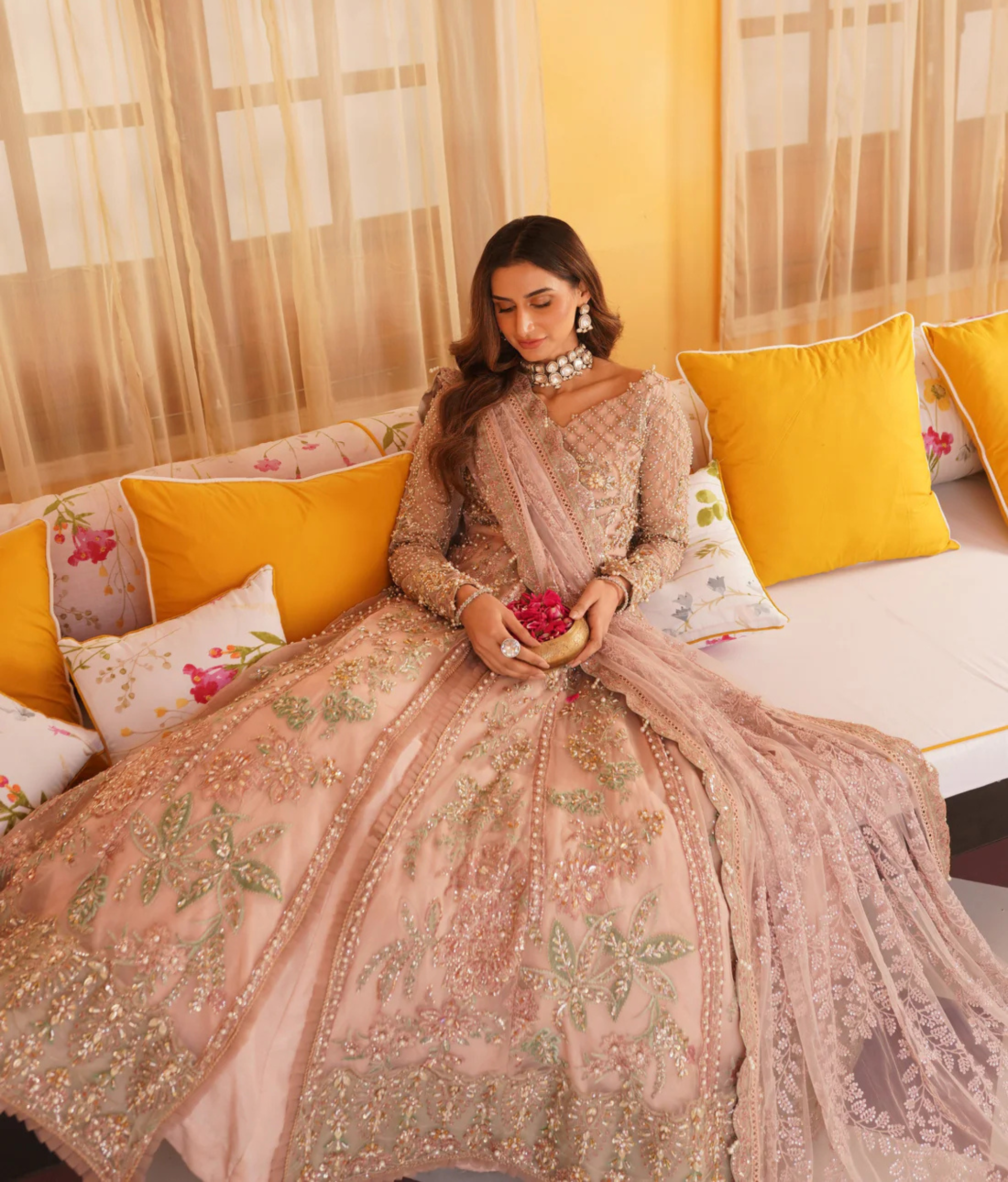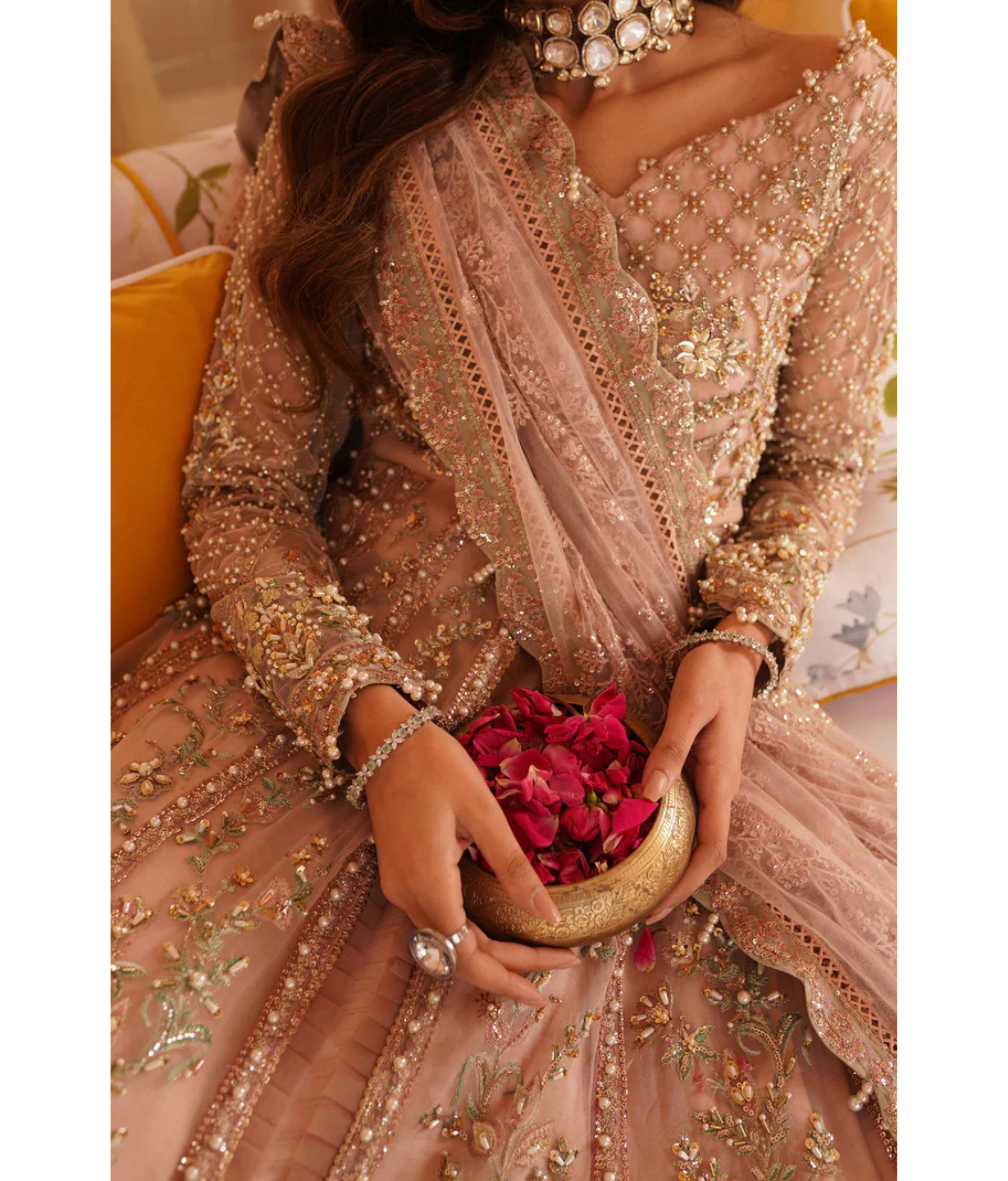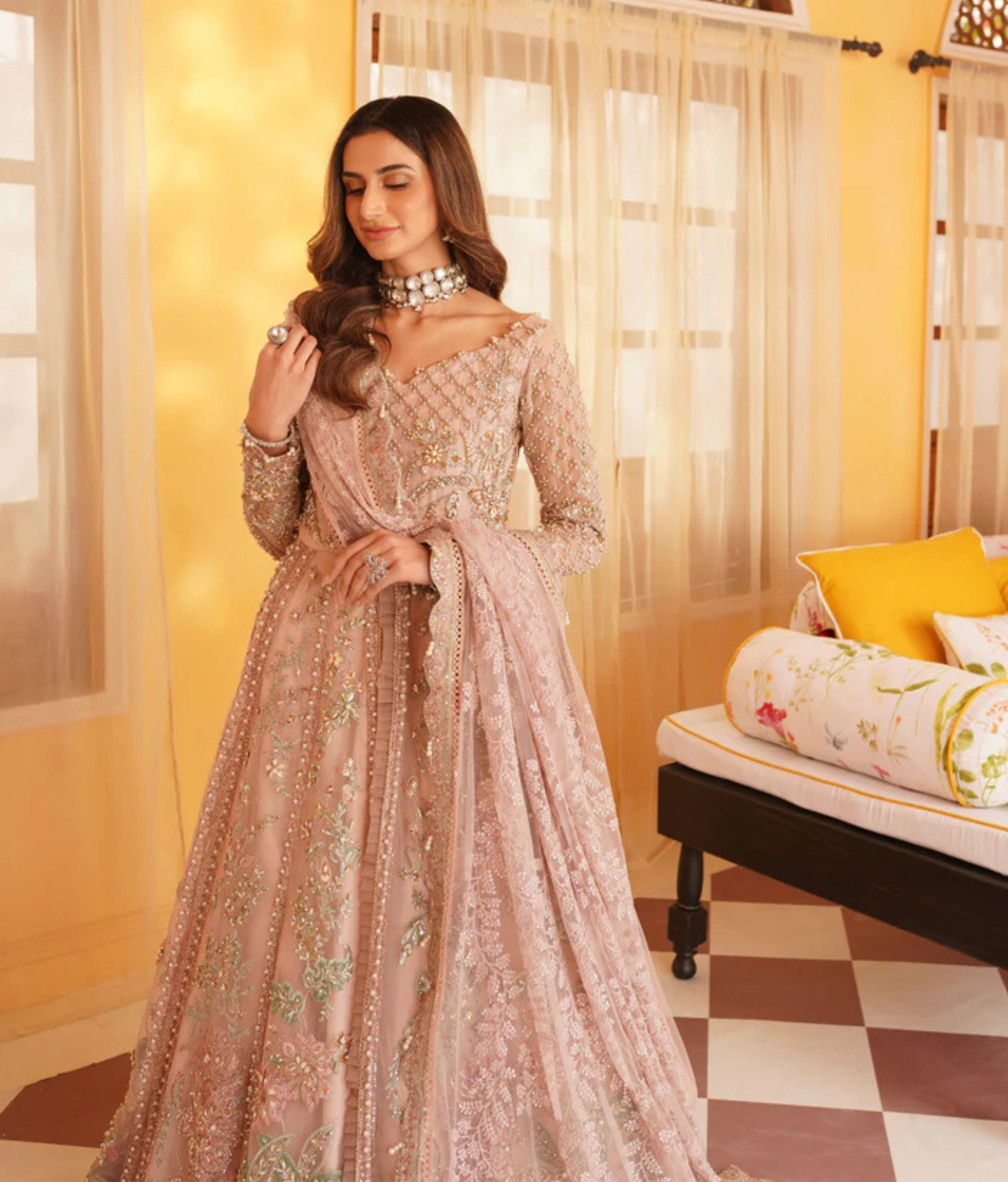 The peach color of the organza fabric gives it a warm and soft appearance, making it perfect for various formal and semi-formal occasions. Crafted from high-quality organza fabric and embellished with meticulous handcrafted embroidery, this dress is a celebration of your unique journey. Now step into a world of timeless traditions with this breathtaking wedding dress. A true reflection of our cultural richness and the celebration of love.